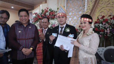 DAIRIKAB.go.id – Bupati Dairi Eddy Keleng Ate Berutu menyerahkan langsung akta nikah untuk pengantin baru Dhaniel Manurung dan Anggun Pardede…